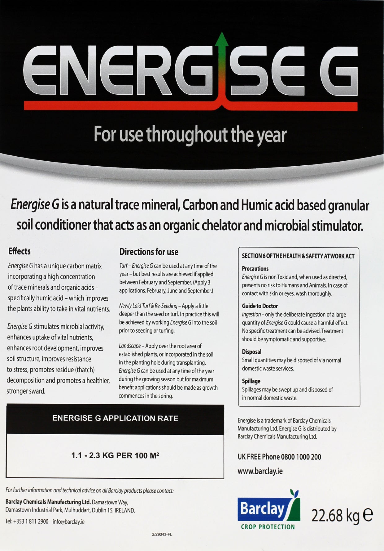 Energise G also directly benefits plant growth by promoting cell elongation. The benefit of this is deeper rooting and therefore; better resistance to drought, higher resilience to disease infections and quicker establishment plants and seeds.